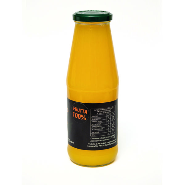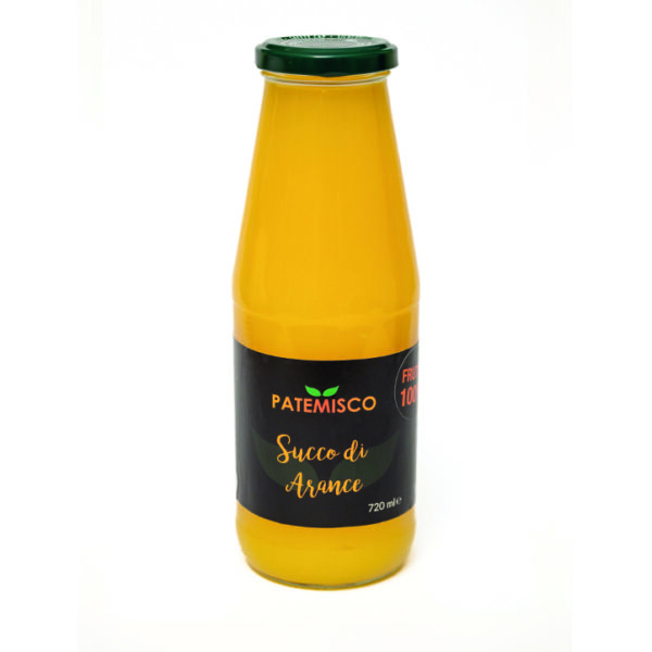 Il succo di arancia Patemisco è 100% naturale. Contiene solamente frutta fresca prodotta nei nostri agrumeti, senza aggiunta di coloranti, conservanti o qualsiasi altro tipo di ingrediente artificiale. Puoi provarlo in comode bottiglie monouso da 720 ml.